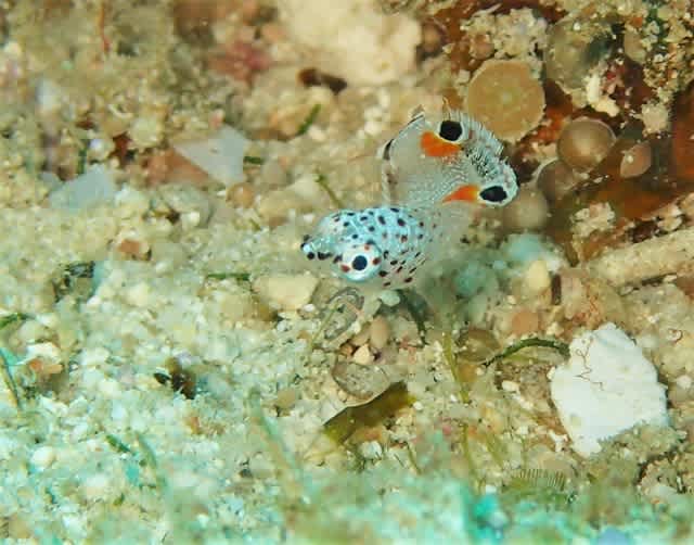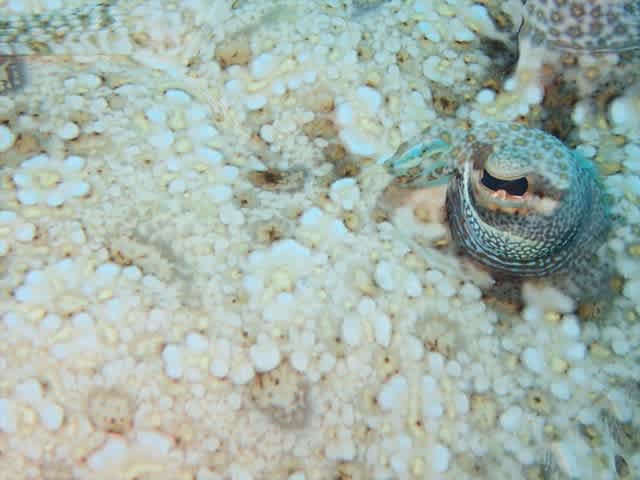 水深2mの浅瀬では まつ毛とハナ毛と水玉のかわいいモンツキカエルウオもゲットでしたよ~🐸