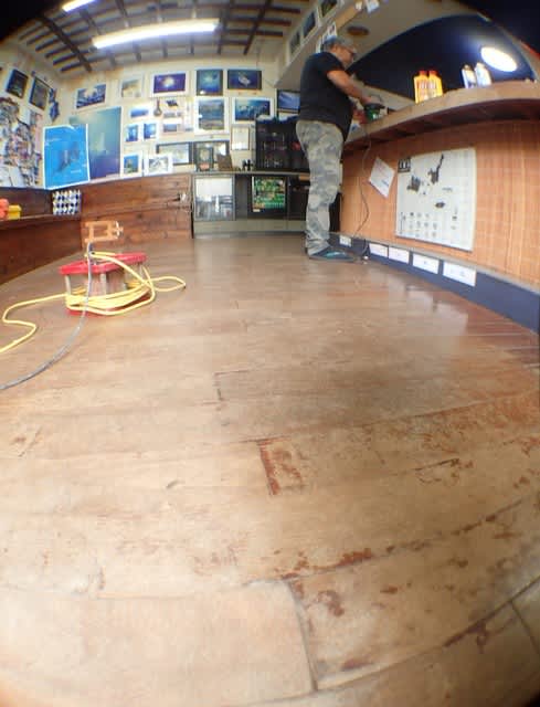 長いことはげ禿だった床のワックスがけとカウンターの改造で~す
