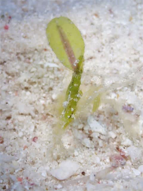 白砂エリアではピクミンのように頭にかわいい葉をのせたコノハガニ