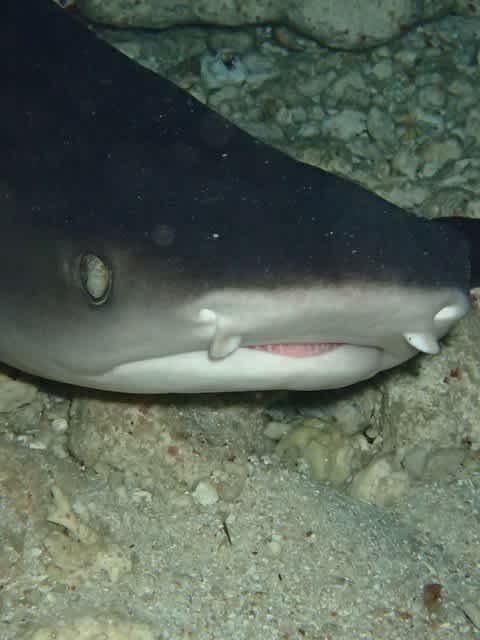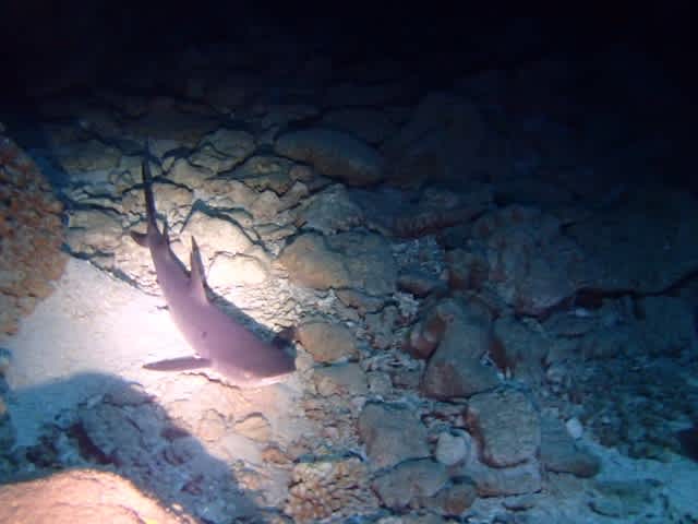 ケーブの奥には、住み着いているチビホワイトチップシャークちゃん(*‘ω‘ *)♪