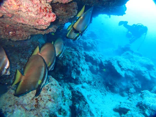1本目は屋良部コーナー 潮流もありグルクンやアマミスズメダイがたっぷりです🐟🐟