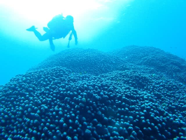 卵を産み付ける、コモンシコロサンゴは 巨大でなかなか迫力があってステキです\(^-^)/