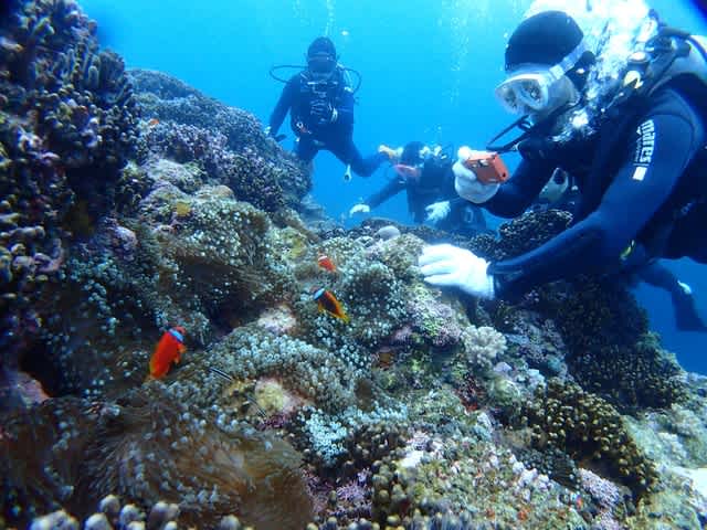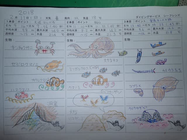 コンディション:晴れ時々曇り 北の風 波2~3m 気温17~14℃ 水温22℃ 透明度15~20m