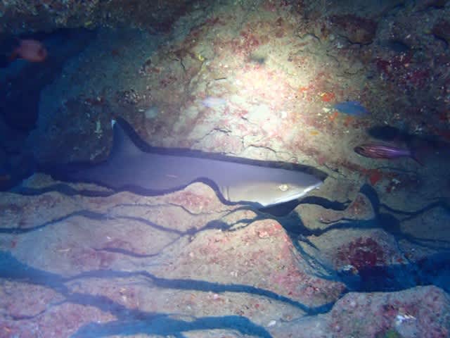 洞穴に頭を突っ込んでみると、ホワイトチップシャークが寝ていましたよっ(*’▽’)☆