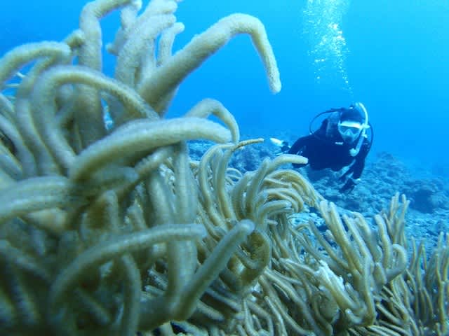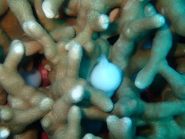 ユビエダハマサンゴの群生に、コブシメが産卵をしに寄ってきてました(*´▽`*)