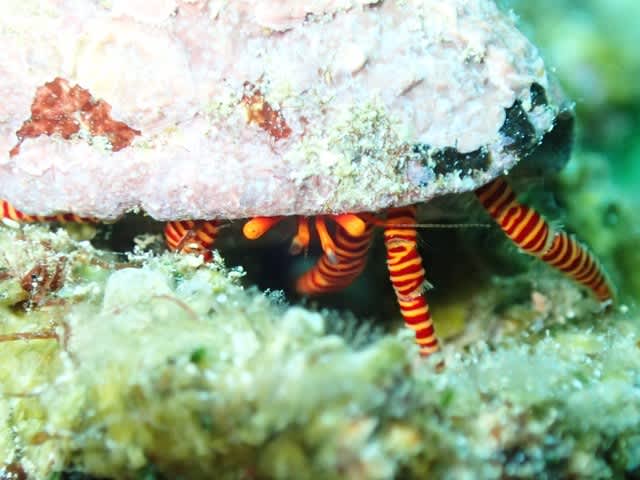 にゅにゅっと出てきたのは ベニワモンヤドカリでした~(*‘∀‘)