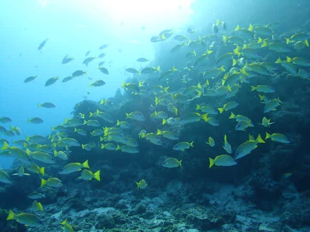 そこでハナヒゲウツボやスカシテンジクダイの大群、