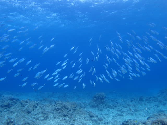 水面近くにはプランクトンを捕食するグルクンでいっぱい!!!