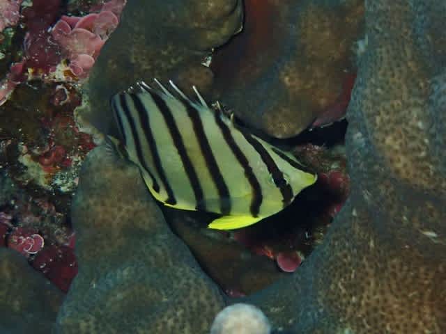 ずっと住み着いている 縞々の素敵なレア種 ヤスジチョウチョウウオ(‘ω’)🎵かわいいな~