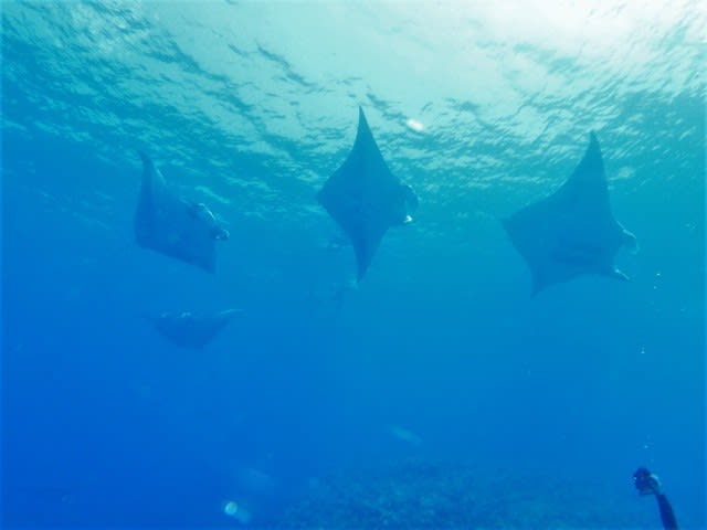 5匹のマンタが連なって&翻りながら現れちゃってくれました!!!!!!