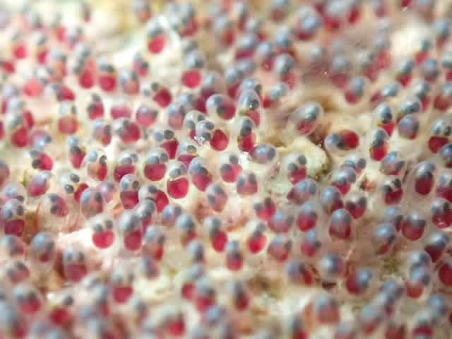 ロクセンスズメダイが産卵した卵は かわいいお目めが見えていてほっこり♨