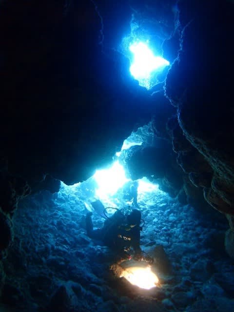 洞窟の中、眩しいくらいに光が射し込んできれいですねっ(≧▽≦)