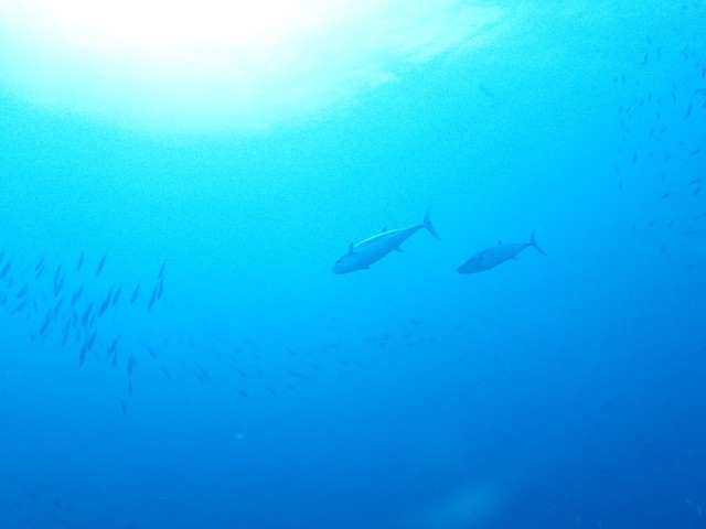 群れの向こう側から 大きなシルエット!!イソマグロが登場してくれました(@_@)!
