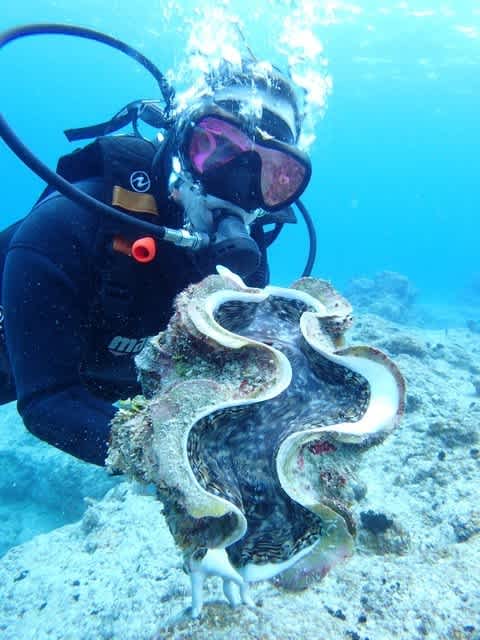 顔の倍以上あるでっかシャコガイで遊んできました~~~(-ω-)/🎵