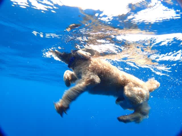 看板犬ゴンちゃんも 水面を元気っぱい泳いで マンタに会ってきましたよっ(^_-)-☆