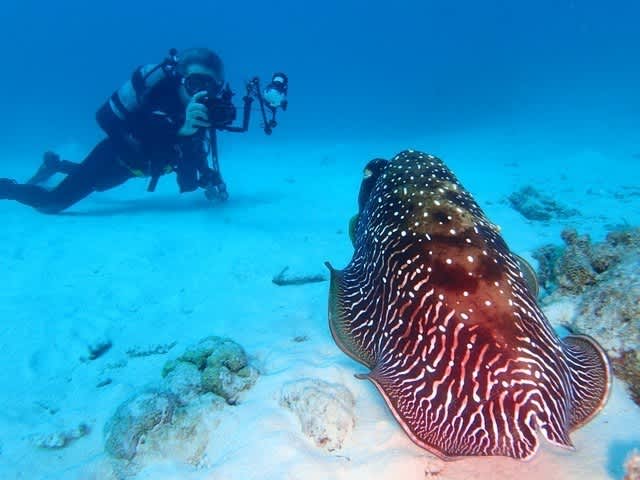 立派なオスのコブシメちゃん 逃げずに遊んでくれました~(●´ω`●)