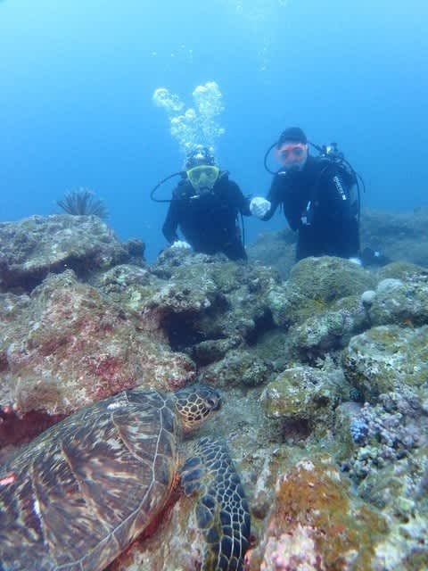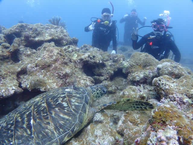 entryしてすぐに びっくりするぐらい大きなアオウミガメが登場っっ👀👀