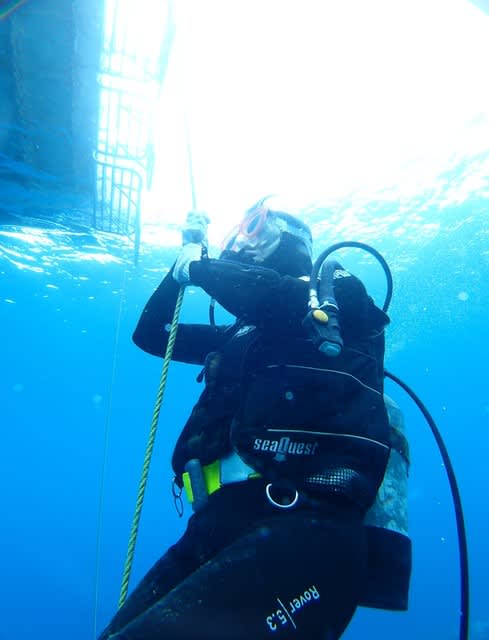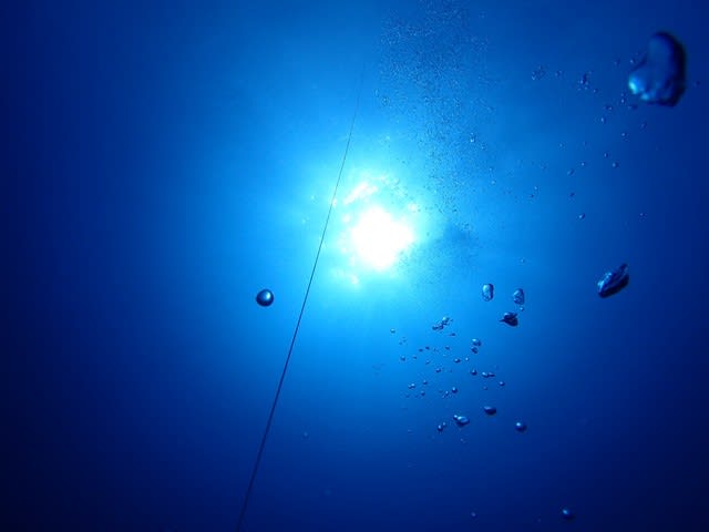 初の潜降っ!どきどきですね~ ゆっくり丁寧に水中世界へと降りていきます・・・