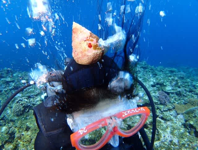 コンディション:南東の風 波1.5m 気温25℃ 水温23℃ 透明度20m