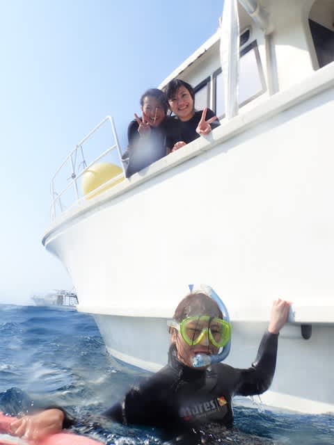 スノーケルで近寄って、まさかの別船ですが親子写真撮れたっていう奇跡っp(^-^)q♥️♥️びっくりぽんでした✨