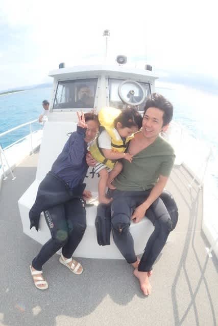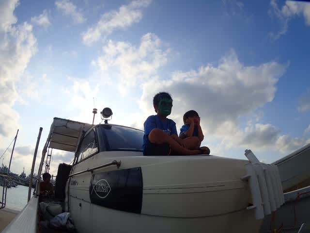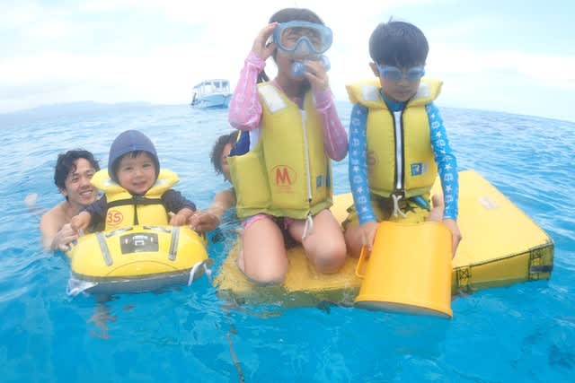 ランチタイム後は、お子様乗船のあかりちゃんとあきと君とたつき君もパナリブルーの海を満喫