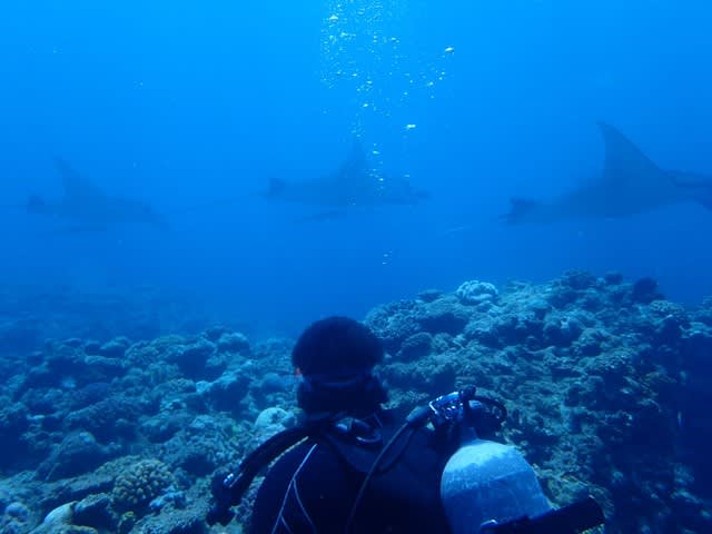 ホワイトチップシャークがしゅるりと泳いでいたり