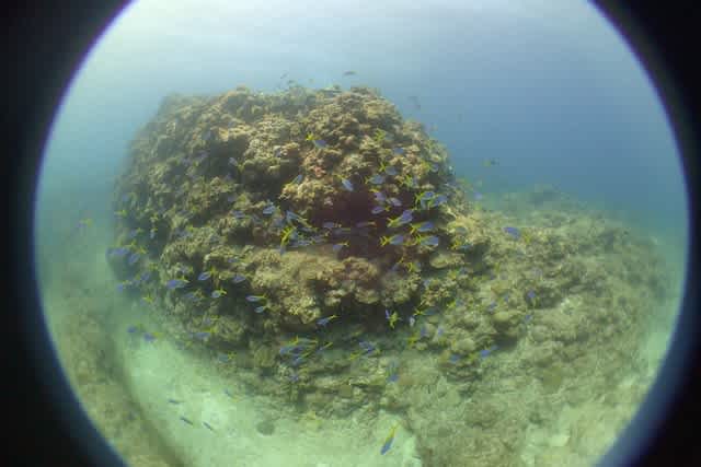 一本目の黒島は水面こそは濁りがありましたが、水深を下げると青い海が広がってましたよ。