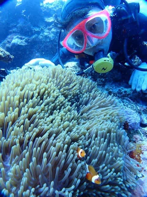 初のダイビング器材に呼吸器での呼吸に はじめはちょっとドキドキもしました が!