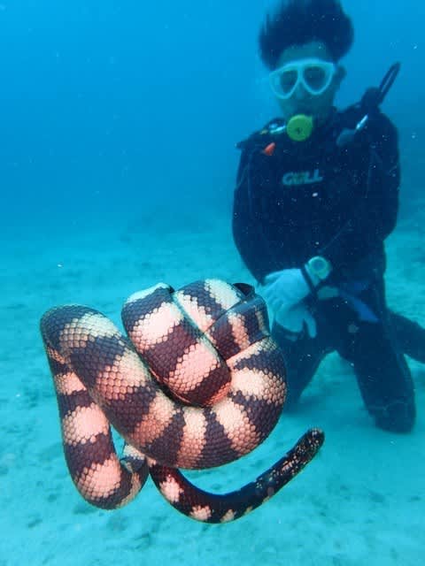 そのよこで団子になっていた1匹のウミヘビさん!?