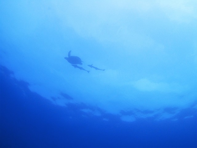 つるつるの水面バックにカメとコバンザメのシルエットがステキでしたよー(°▽°)🎵