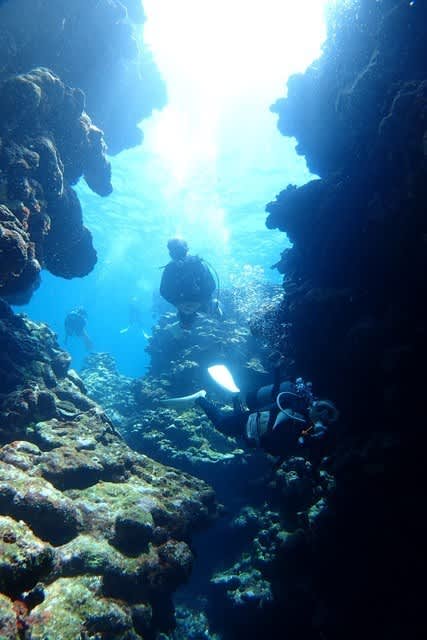 あさ~いリーフのクレバスを通ったり 水面まででて半水面を楽しんだり~