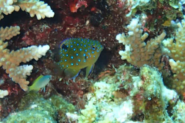 満天の星空を纏うルリホシスズメダイの幼魚🐟🌠