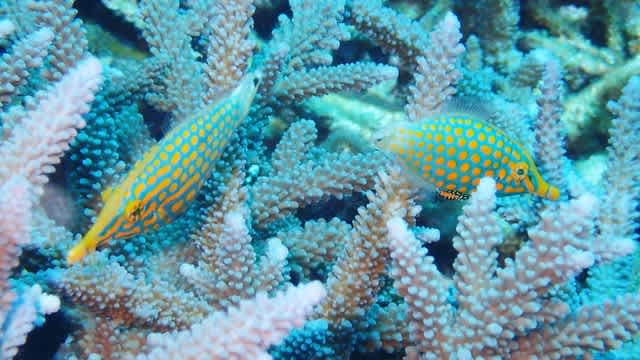 サイケデリックなカラーのテングカワハギのペア👺🐠
