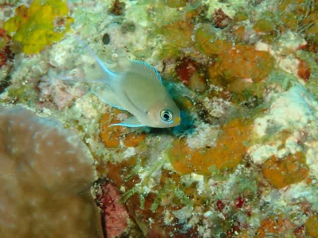 壁沿いに しっぽ美人なマルスズメダイ幼魚🎵