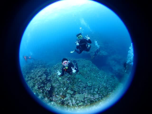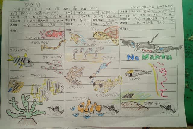コンディション:晴れ 南の風 波2mうねり有 気温30℃ 水温27℃ 透明度~15m