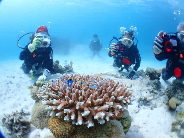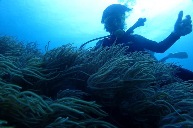 天気も十分☀️ まぶしい太陽光と、ウェーブなソフトコーラルが