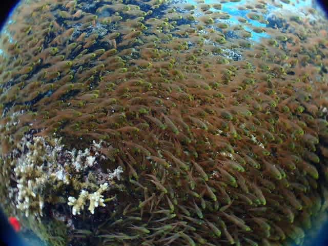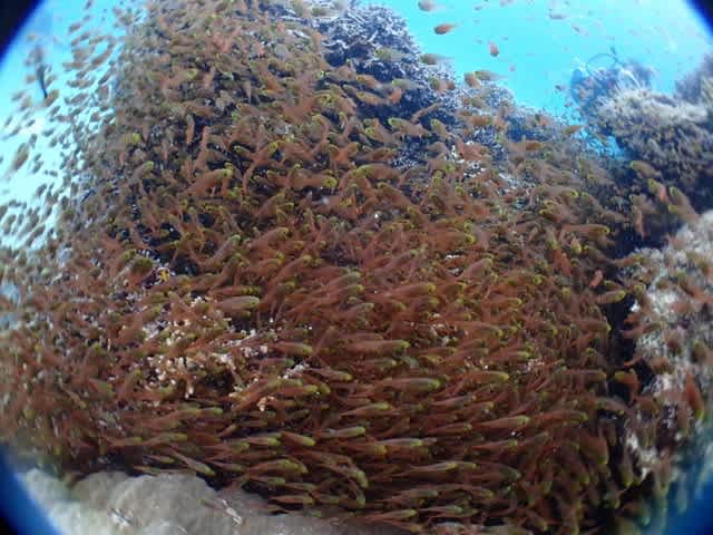 ダイバーの隙間を ゴマアイゴの大群 駆け抜ける~~~っ!!!
