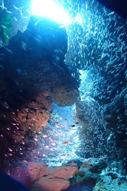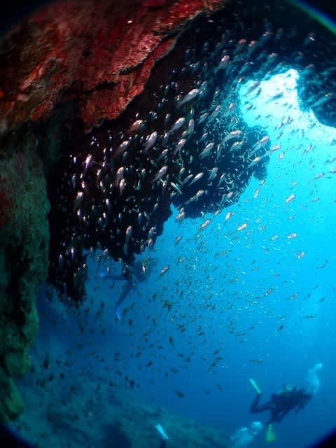 アーチやクレバスの中にはわさわさとキンメモドキやテンジクダイが増えつつあり、