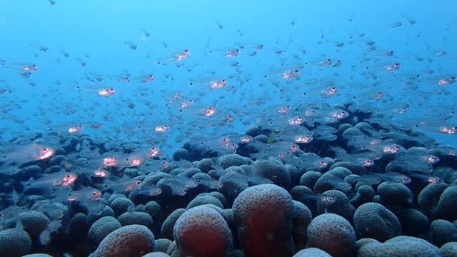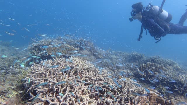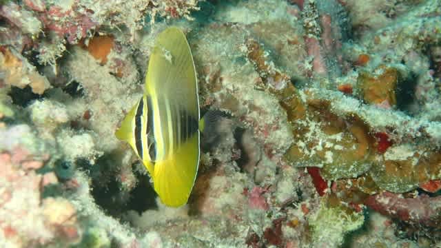 サンゴの隙間 ヒレナガハギのかわいい幼魚ちゃん