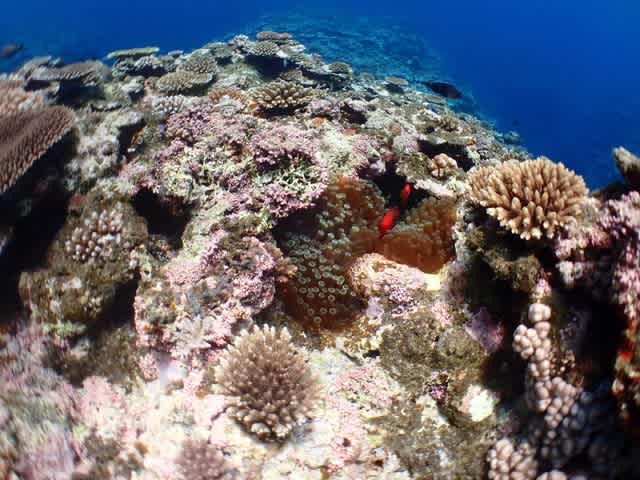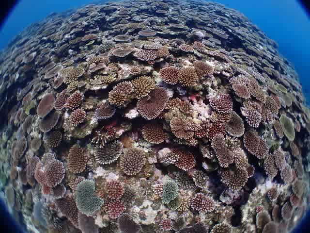 白化してサンゴが少なくなってきた石垣島ですが、崎枝方面は今はテーブルサンゴの群生が