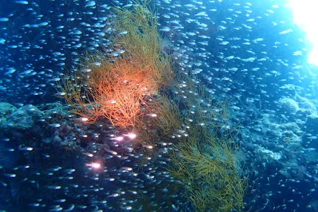 ウスモモテンジクダイも光を受けてきらめいていますよ✨