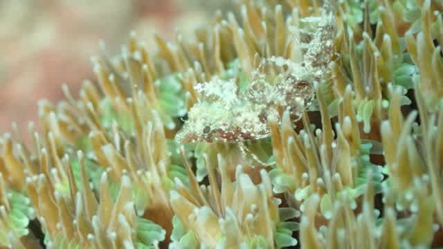 パラオクサビライシの水玉に隠れていた コノハガニ