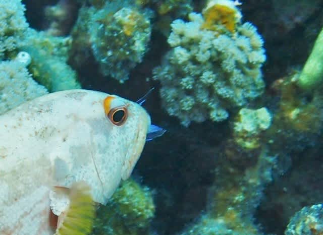 お口から リボンスズメダイのしっぽがはみ出しちょりますΣ( ̄ロ ̄lll)ガーン