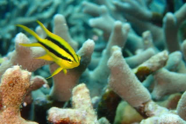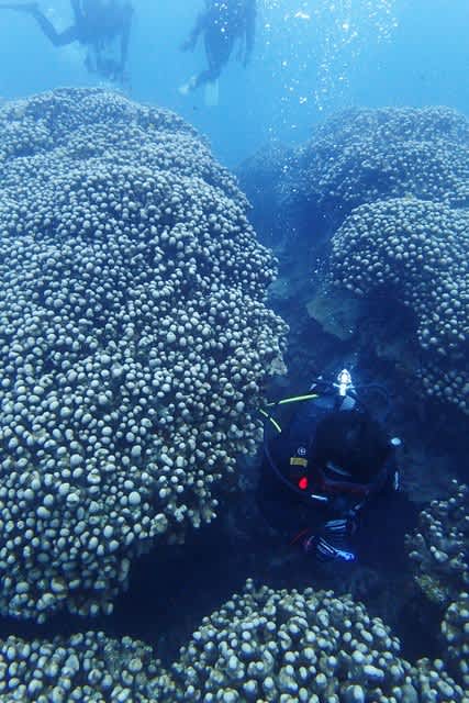 こ~んな大きなサンゴのクレバスを通ってみたり