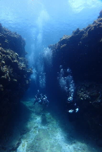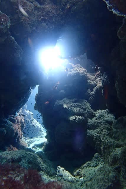 こ~んな大きなサンゴのクレバスを通ってみたり