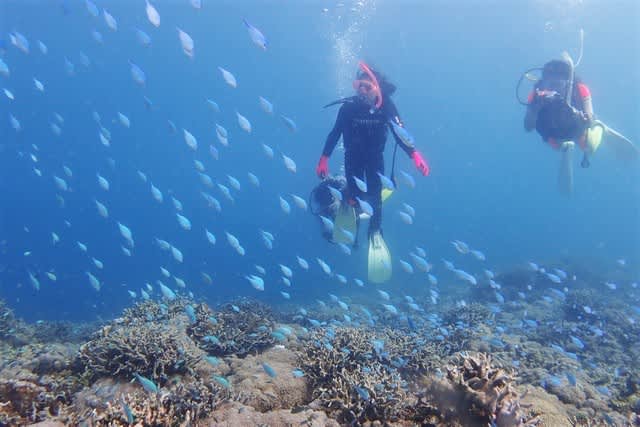 とびきりのサンゴ畑で お魚いっぱいのダイブからスタートです(ФωФ)