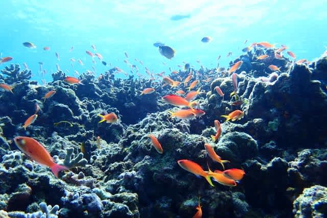 アカネハナゴイやキンギョハナダイの オレンジ色が青い海に映えて、これまた癒されちゃったのでした〜♨♨