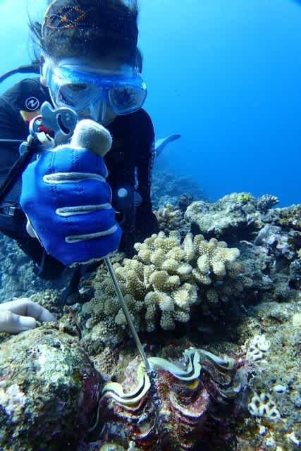 ちょっかいを出したくなるお年頃なのか、シャコガイにいたずら🎵