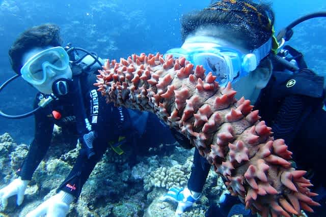 アフロヘアのようなバイカナマコも顔にくっついちゃったりでしたよ~ん(*^^)ふふふ