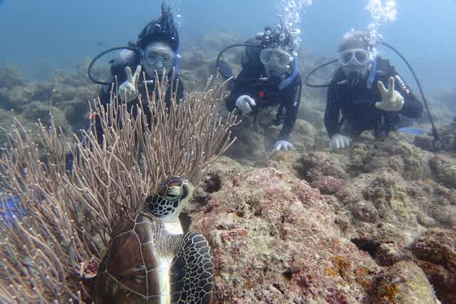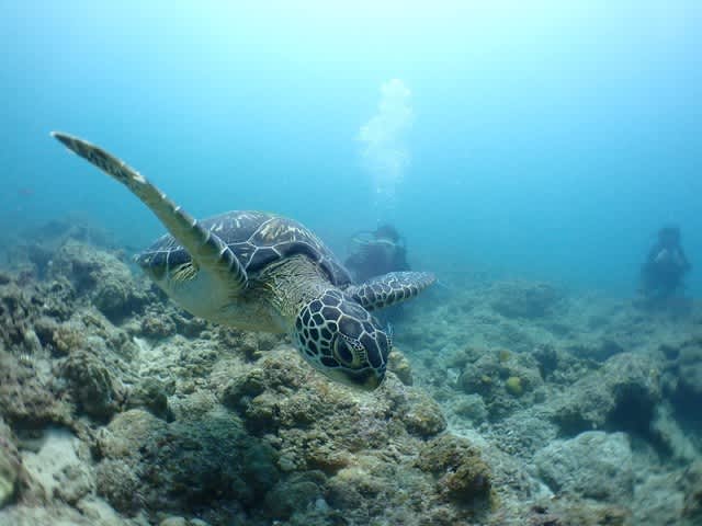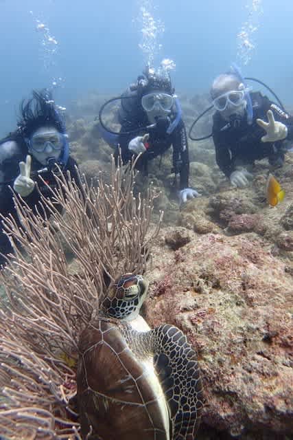 一日にカメもマンタも出会えて